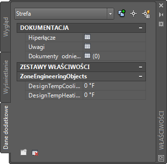 Zestaw właściwości zostanie dodany do wybranej strefy. Ten zestaw jest wyświetlany na karcie Dane dodatkowe.