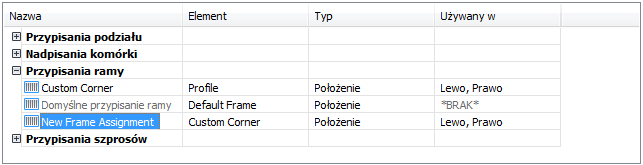 - W lewym okienku zaznacz siatkę, w której chcesz utworzyć nowe przypisanie ramy.