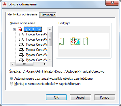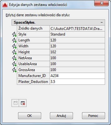 Procedura ta umożliwia edytowanie wartości ręcznych, bazujących na stylu danych zestawu właściwości, dołączonych do obiektów na rysunku, do których są odnośniki zewnętrzne.