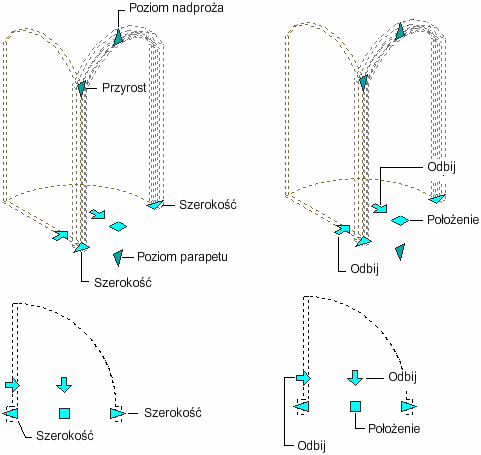 Przyrost wysokości Przyrost wysokości dotyczy drzwi zakończonych pięciokątem, łukiem i łukiem gotyckim. |