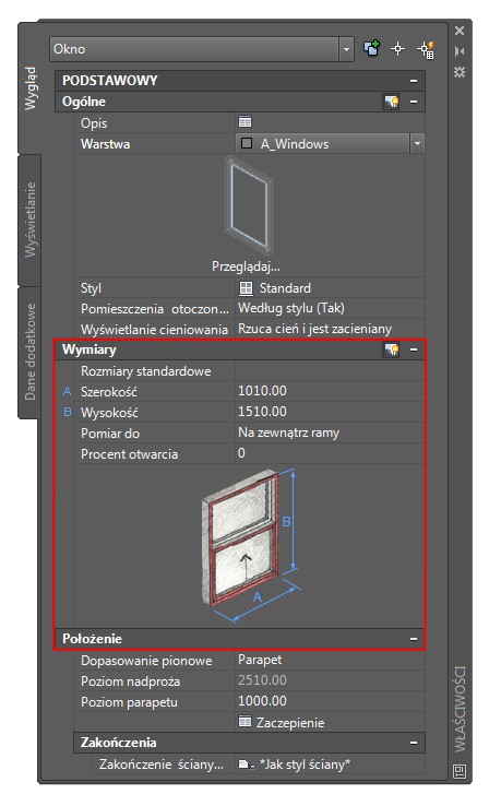Poniżej opisano procedurę zmiany sposobu pomiaru szerokości okna lub okien.