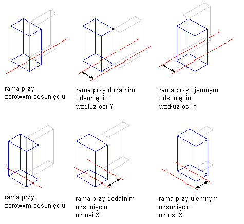 | Y | W widoku w planie dodatnia wartość odsunięcia Y powoduje przesunięcie krawędzi ramy nad linię bazową, natomiast wartość ujemna — poniżej tej linii. |