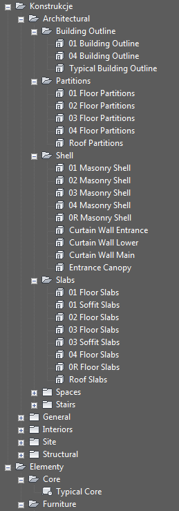Eksplorator rysunków jest widokiem drzewa wspólnym dla zakładek Konstrukcje, Widoki i Arkusze nawigator projektu. W tym miejscu można zarządzać plikami rysunków. każda karta Nawigatora projektu z wyjątkiem karty Projekt ma drzewo eksploratora rysunków, w którym wyświetlane są pliki rysunków skojarzone z projektem — elementy, konstrukcje, widoki i arkusze.