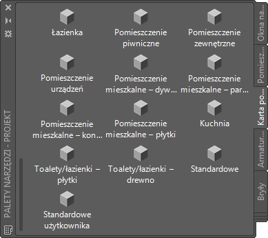 Paleta narzędzi Roombook zawiera różne style materiałów powierzchni. Polecenia są połączone z plikiem
