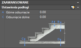 | ustalić grubość materiału wykończeniowego podłogi w podłodze dolnej kondygnacji | wpisz wartość w polu Odsunięcie dolne. |