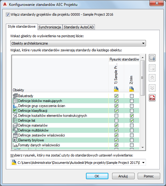 Istnieje możliwość synchronizacji różnych części projektu. Można zsynchronizować cały projekt, poszczególne rysunki projektu lub poszczególne style i ustawienia wyświetlania.