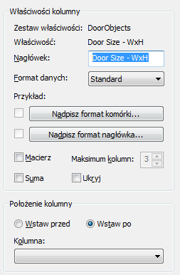 | użyć formatu tabeli dla wartości w kolumnie | wybierz Siatka i wprowadź maksymalną liczbę kolumn używanych do określenia wartości dla wybranej właściwości. |