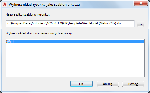 - W oknie dialogowym Wybierz szablon wybierz plik szablonu rysunku (DWT).