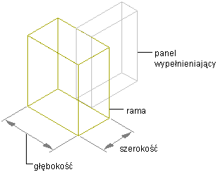 Wszystkie siatki zestawów drzwi/okien, w tym siatka podstawowa, mogą mieć przypisane definicje ram. Rama zestawu drzwi/okien jest reprezentowana przez zewnętrzne krawędzie siatki podstawowej. Łączny rozmiar ramy zależy od długości i wysokości siatki zestawu. Ramę można skonfigurować przez określenie jej szerokości i głębokości lub przez wybranie profilu.
