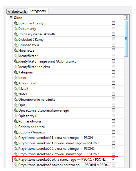 W oknie dialogowym Dodaj kolumnę, w obszarze Style okien wybierz opcję Przybliżona szerokość otworu narożnego — psotn1 x psotn2.