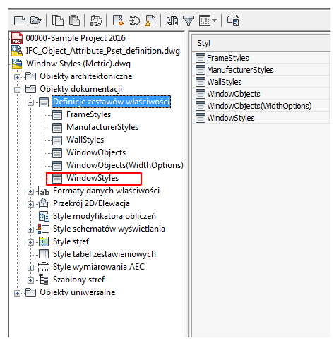 Rozwiń definicję Zestaw właściwości i wybierz opcję Style okien.