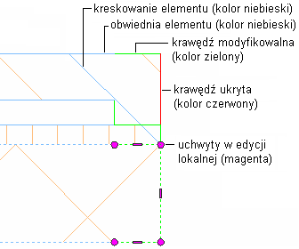 - Kreskowanie: ten komponent wyświetlania kontroluje właściwości warstwy/koloru/rodzaju linii kreskowania profilu tymczasowego. Jest on niezależny od jakiegokolwiek kreskowania przypisanego do samego obiektu i będzie wyświetlany tylko w trybie edycji lokalnej. Domyślnie komponent ten jest wyłączony.