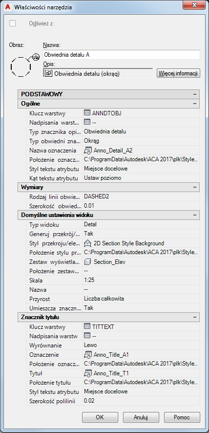 | Rodzaj linii obwiedni | Obwiednia detalu | Definiuje rodzaj obwiedni szczegółu. |