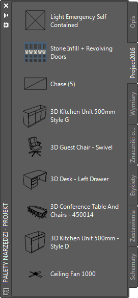 Paleta dodana do zestawu palet narzędzi pozostaje elementem zestawu i będzie dostępna zawsze po uruchomieniu programu AutoCAD Architecture toolset.