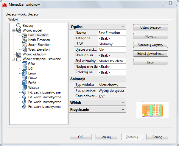 W Menedżerze widoków utworzony widok obszaru modelu jest wyświetlany w polu Widoki.