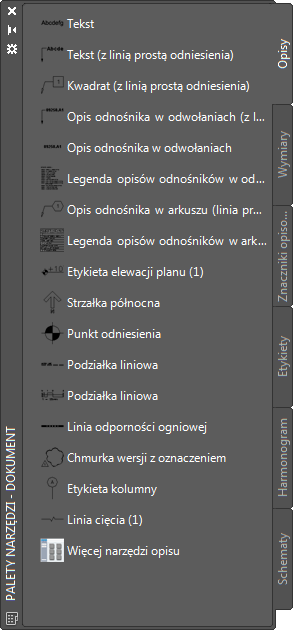 Narzędzi opisów używa się do tworzenia obiektów opisów odpowiadających określonym skalom opisu. Narzędzie opisu to personalizowane narzędzie programu AutoCAD Architecture toolset umożliwiające dodawanie następujących typów opisów do rysunków: