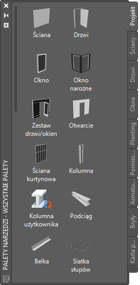 Palety użytkownika utworzone przez menedżera ds. CAD lub innych użytkowników mogą także zawierać narzędzia stref ze stylami stref i parametrami dostosowanymi do projektów lub standardów stosowanych w firmie.