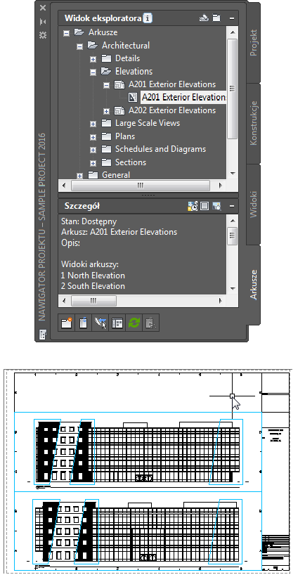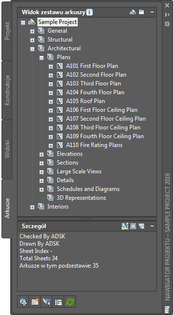 Każdy projekt w programie AutoCAD Architecture toolset zawiera prosty zestaw arkuszy, który obejmuje wszystkie arkusze projektu.