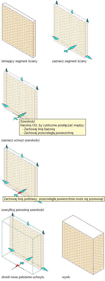 Zmiana szerokości ściany za pomocą uchwytu, przy jednoczesnym zachowaniu przeciwległej powierzchni ściany