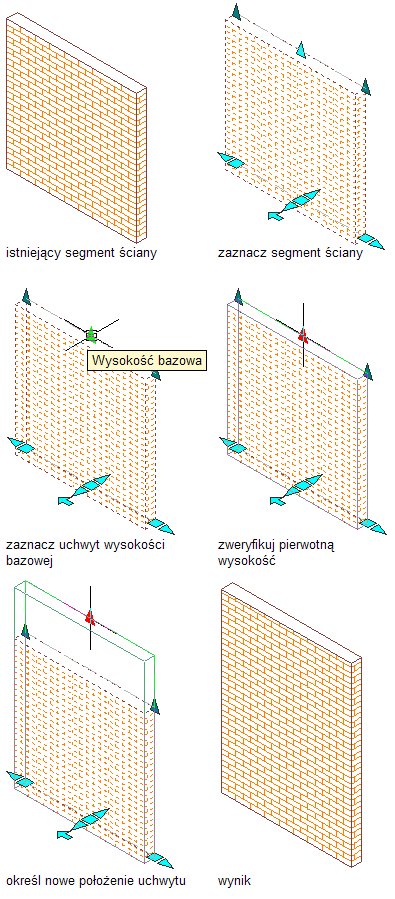 Zmiana wysokości bazowej ściany za pomocą uchwytów
