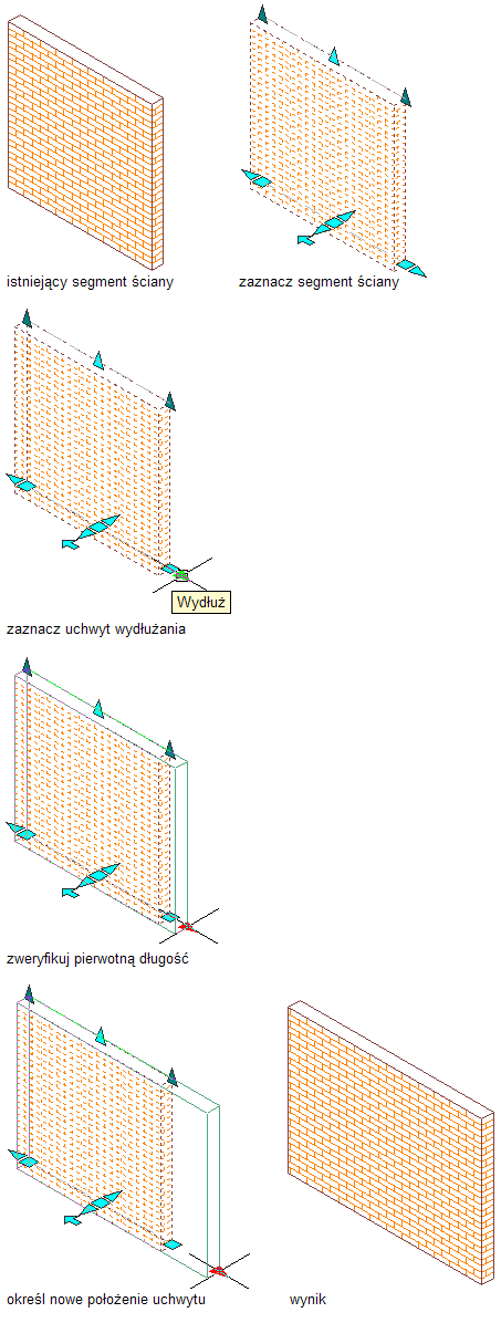Zmiana długości ściany za pomocą uchwytów