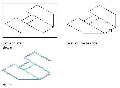 Przekształcanie szkicu w ścianę kurtynową w oparciu o wybraną linię bazową