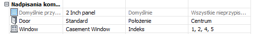 Często w tym przypisaniu warto ustawić definicję wypełnienia najczęściej występującą w projektowanym budynku. Wszystkie komórki, którym nie przydzielono innych wypełnień, będą wtedy używały tej domyślnej definicji.