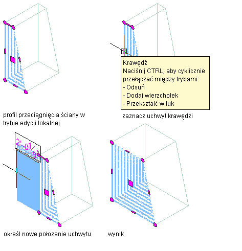 Odsuwanie krawędzi profilu przeciągnięcia ściany do edycji lokalnej