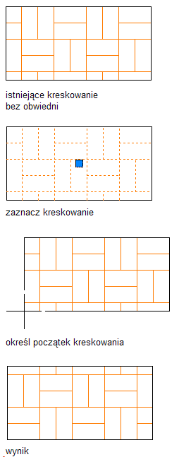 Procedura ta służy do wyrównywania wzorów kreskowań cegieł i murów w obszarze obwiedni, tak aby wszystkie wyświetlane były wzdłuż określonej krawędzi.
