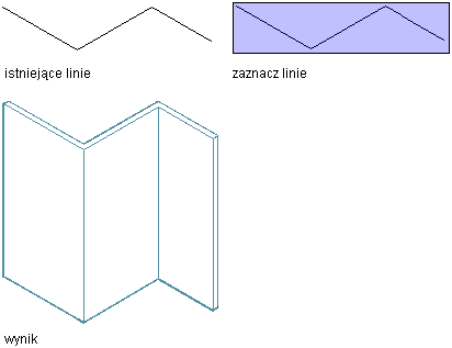 Uwaga: Określanie linii bazowej z dala od obiektu konwertowanego na ścianę wpływa na wstawianie obiektów zaczepionych, takich jak drzwi, okna i otwory. Obiekty zaczepione są wstawiane do ściany względem jej linii bazowej.