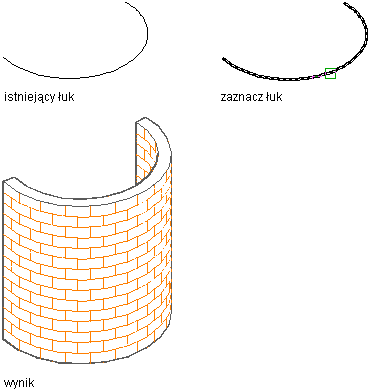 określić linię bazową ściany z istniejącej na rysunku linii lub łuku