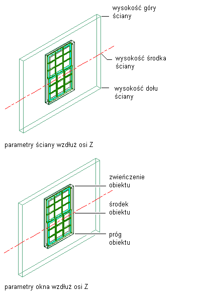| użyć jako punktu odniesienia dołu wysokości ściany | w polu Położenie według (Z) dla opcji Od wybierz ustawienie Dół wysokości ściany. |