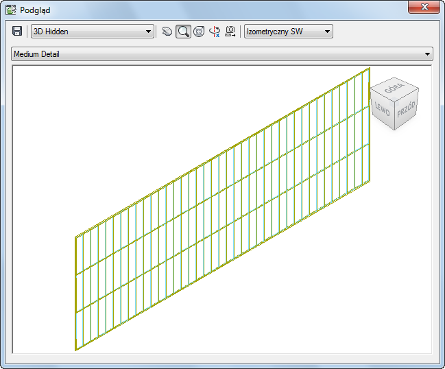 Ściana kurtynowa wyświetlana w oknie Podgląd roboczy