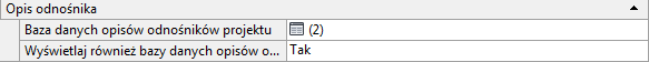 - W przypadku opcji Wyświetlaj również bazy danych opisów odnośników spoza projektu określ, czy oprócz baz danych opisów odnośników określonych dla projektu wyświetlane są wszystkie bazy danych opisów odnośników znajdujące się na karcie Biblioteka AEC w oknie dialogowym Opcje.