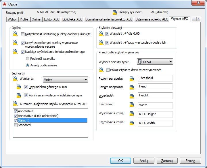 Może się ona różnić od jednostki rysunku. Na przykład można rysować w metrach, a ustawić wyświetlanie wymiarów w centymetrach.