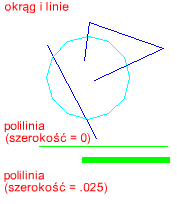 Poniższa ilustracja przedstawia okrąg z nakładającymi się liniami i poliliniami o różnej szerokości: