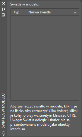 Umożliwia wyświetlanie listy różnych typów świateł z ich unikatowymi nazwami użytymi w rysunku.
