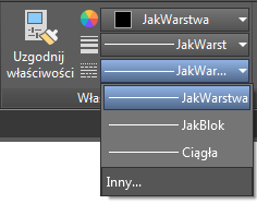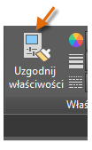 Szybkim sposobem na skopiowanie właściwości z jednego obiektu do innych jest użycie narzędzia Uzgodnij właściwości albo wprowadzenie polecenia UZGWŁAŚCIWOŚCI lub MA w oknie polecenia.
