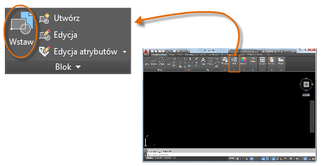 Zazwyczaj każdy z tych bloków jest jednym plikiem rysunku, najczęściej zapisanym w folderze zawierającym podobne pliki rysunku. Aby wstawić blok do bieżącego pliku rysunku, należy użyć polecenia WSTAW (lub wpisać I w oknie polecenia).