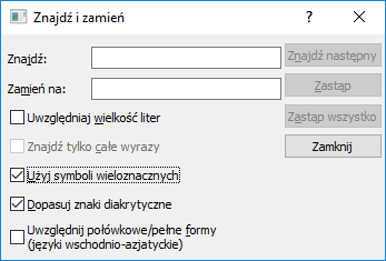 Zostanie wyświetlone okno dialogowe Znajdź i zamień.