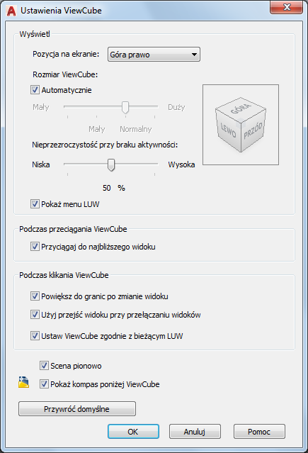 Zmień ustawienia narzędzia ViewCube zgodnie z potrzebami.