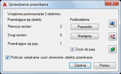 Wyświetla liczbę przenikań znalezionych między zestawami obiektów podczas działania polecenia PRZENIKANIE.