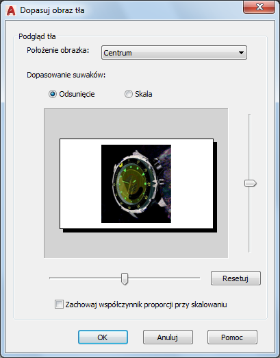 Opcje sterowania obrazem tła zastosowanym do nazwanego widoku obszaru modelu.