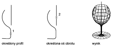 Polecenie POWOBROT tworzy siatkę przybliżającą powierzchnię obrotową, przez obrót profilu wokół określonej osi. Profil może składać się z linii, okręgów, łuków, elips, łuków eliptycznych, polilinii, splajnów, zamkniętych polilinii, wielokątów, zamkniętych splajnów i pierścieni.
