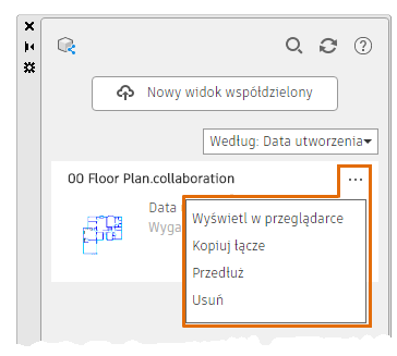 Za pomocą opcji w menu Więcej można zarządzać widokami współdzielonymi.