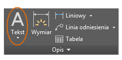 Opisy ogólne tworzy się za pomocą polecenia WTEKST (lub po wpisaniu MT w oknie polecenia) co oznacza tekst wielowierszowy. Narzędzie tekstu wielowierszowego jest dostępne w panelu Opis.