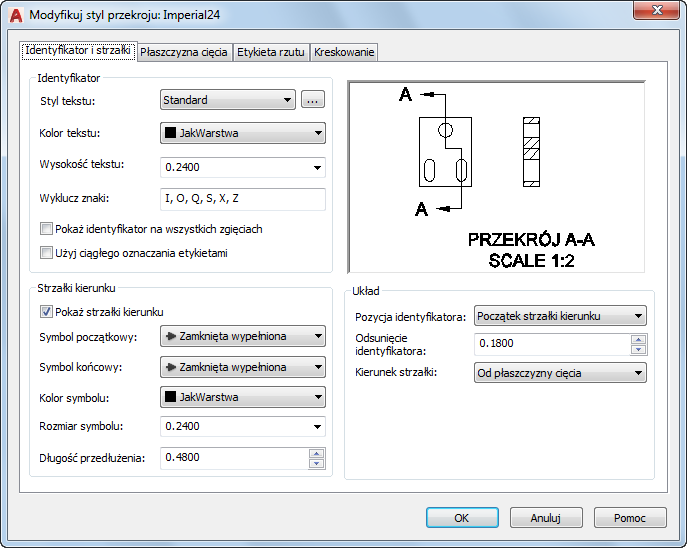 Karta Identyfikator i strzałki (Menedżer stylów przekroju)