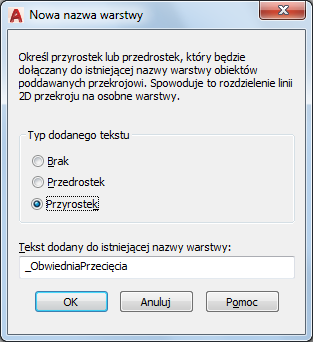 W oknie dialogowym Ustawienia przekroju, na liście Warstwa kliknij opcję Ustawienia nazwy nowej warstwy.