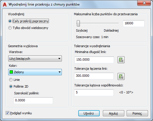 Okno dialogowe Wyodrębnij linie przekroju z chmury punktów