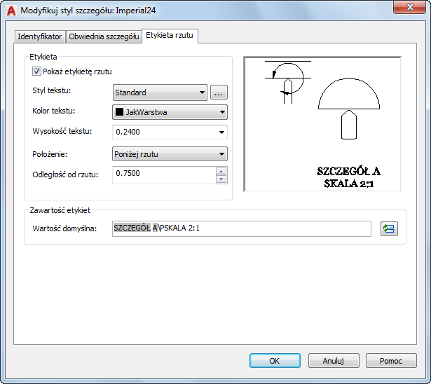Ustawia widoczność etykiet, właściwości tekstu etykiety, położenie etykiety i zawartość etykiet widoku szczegółów.
